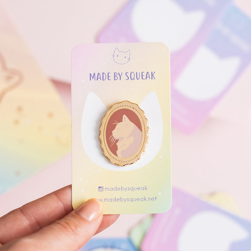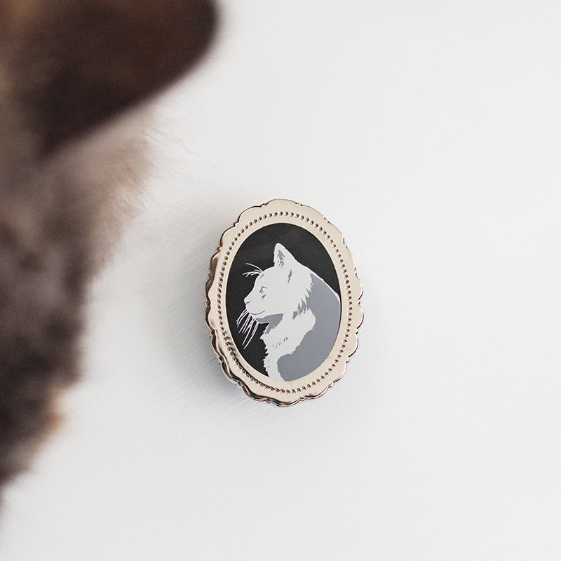 Cameos have been my favorite type of design for years. I’ve collected quite a few of them in the form of rings, brooches, and necklaces so far, so of course I had to recreate the design with a cat! I was inspired by my childhood cat Shania. She was fluffy, glorious, and a total queen. So once again I am inspired by her likeness!